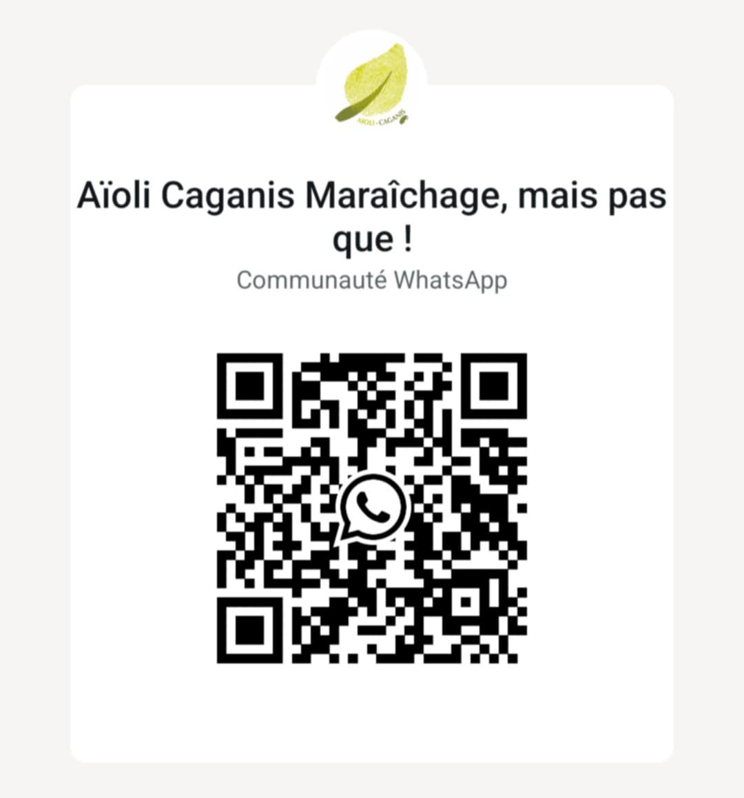 Découvrez notre communauté Aïoli Caganis Maraîchage, mais pas que ! Scannez le QR code ci-dessous pour rejoindre l’univers et suivre nos actualités tous les lundis.
